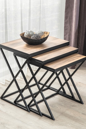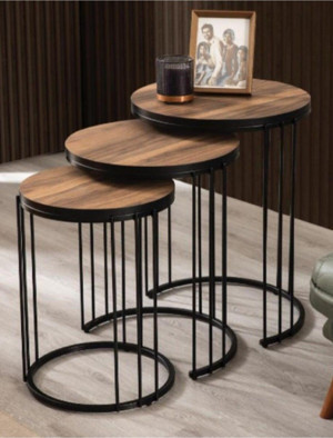 Roma Ceviz Kaplama Mdf 3^Lü Zigon Sehpa 47x47 cm