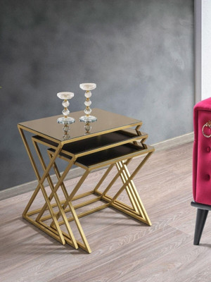 Napoli Gold Metal Ayaklı Aynalı Zigon Sehpa 3'Lü 47x47 cm