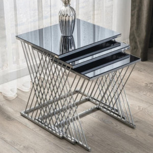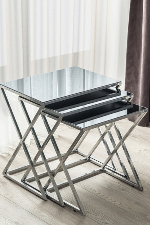 Napoli Krom Metal Ayaklı Aynalı Zigon Sehpa 3'Lü 47x47 cm