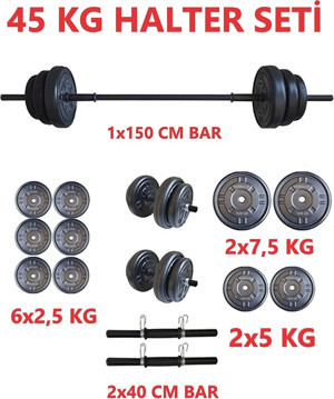 45 Kg Ağırlık Seti 45 Kg Vücut Geliştirme Aleti Halter Seti (40 Kg Plaka Ağırlığı)