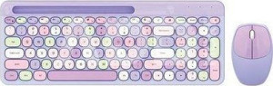666 2.4g Kablosuz Mor Renkli Klavye ve Mouse