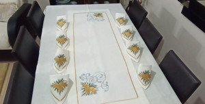 Nakışlı Desenli Masa Örtüsü Takımı 12 Kişilik 14 Parça Peçete Runner