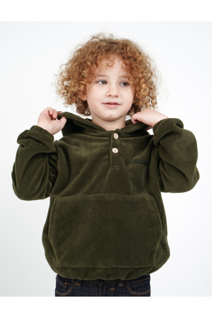 Erkek Çocuk Polar Kapişonlu Kanguru Cepli Düğmeli Sweatshirt Hırka Ceket