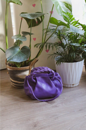 Kadın Mor Örme Saplı Yumuşak Deri Omuz Çantası