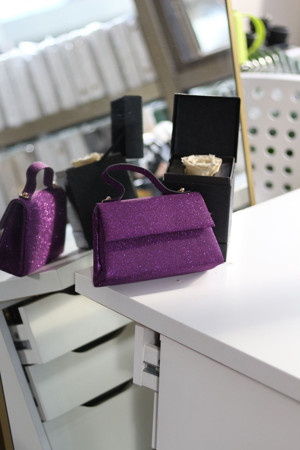 Kadın Mor Simli Tutma Detaylı Abiye Omuz Çantası