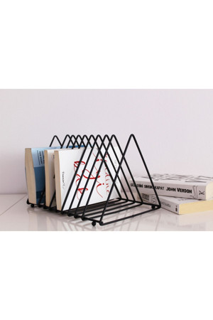 9 Gözlü Üçgen Masaüstü Siyah Metal Organizer Büyük Dergilik-Plaklık-Vinil-Gazetelik-Kitaplık