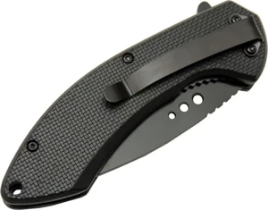 4-12-2 Siyah Kurtarma / Kamp Çakısı 21cm- Yarı Otomatik, Testere Detaylı, Cam Kırma Aparatlı, Kemerlikli