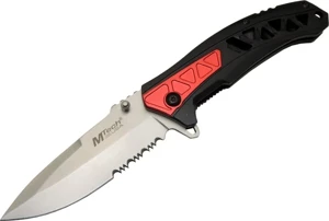 4192 Kırmızı Kamp Çakı 21cm - Yarı Otomatik, Kemerlikli, Testere Detaylı, Desenli Sap