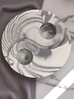 Mermer Desenli El Yapımı Beton Dekor Set Taş Tozu Mumluk Takı Kutusu Şamdan Yuvarlak tepsi