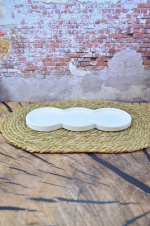 Üç Bölmeli Taş Tozu Dekoratif Tepsi Mumluk Sunum