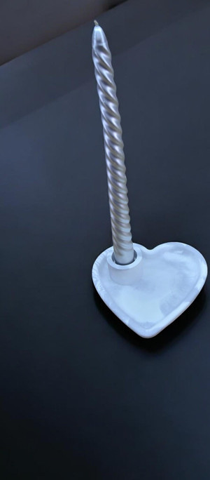 El Yapımı Kalp Şeklinde Taş Tozu Beton Şamdan – Dekoratif Mermer Desenli Mumluk, Tealight Uyumlu Romantik Masa ve Ev Dekorasyonu
