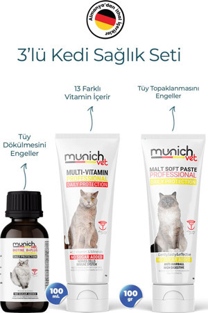 3’Lü Kedi Seti Tüy Sağlığı Damlası(100Ml) Malt Pasta(100Gr) Multi Vitamin Pasta(100Gr)