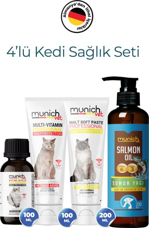 Kediler İçin 4'Lü Set Biotine Plus & Balık Yağı & Malt Paste & Multi Vitamin