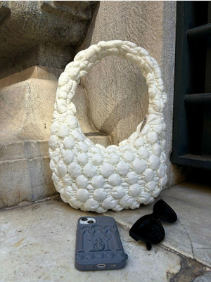 Cluody Bag Beyaz Baget Kapitone / Quilted Bulut El Ve Omuz Çantası