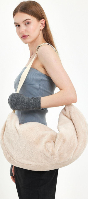 Fluffy Peluş Moon Bag Fermuarlı, Astarlı , Omuz & Çapraz / Spor & Günlük Çanta
