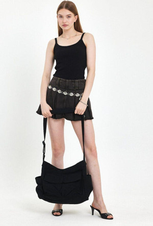 Siyah Cep Detaylı Kanvas Tote Ayarlanabilir Sap / Geniş Iç Hacim / Kargo Cep Postacı Çanta