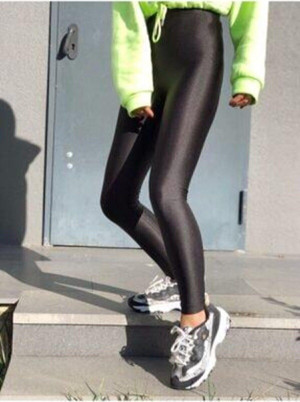 Kadın Siyah Parlak Yüksek Bel Toparlayıcı Disko Tayt Siyah L