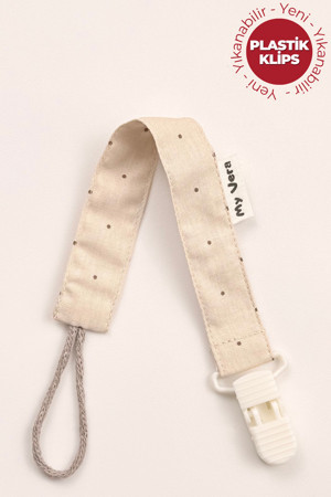 Bej - Vizon - Vizon Puantiye - Plastik Klipsli Emzik Askısı Seti - 3'Lü Emzik Zinciri Seti