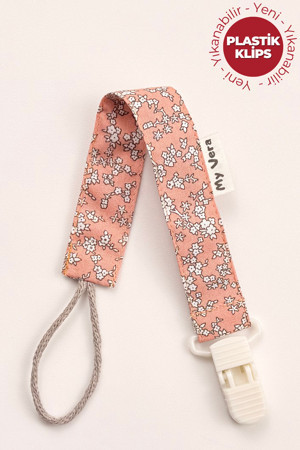 Bahar Çiçek Desenli Vizon - Plastik Klipsli Pamuklu Emzik Askısı - Emzik Zinciri - Emzik Tutacağı