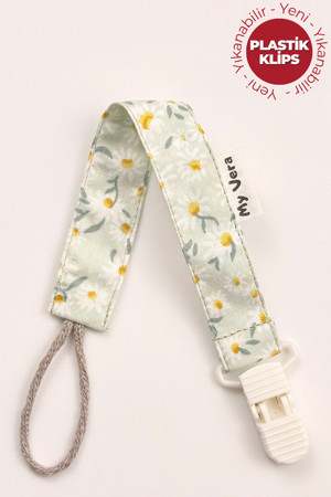 Vizon Papatya Emzik Askısı - Kumaş Pamuk Bağcıklı Emzik Zinciri - Emzik Tutacağı