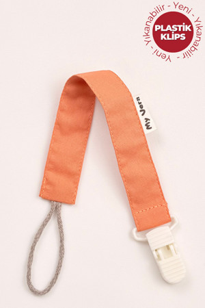 Tarçın Emzik Askısı - Kumaş Pamuk Bağcıklı Emzik Zinciri - Turuncu Emzik Tutacağı