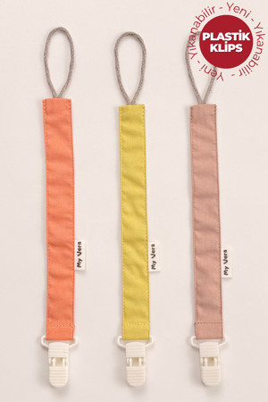 Tarçın - Hardal - Vizon - Emzik Askısı Seti - 3'Lü Emzik Zinciri Seti - %100 Pamuk Kumaş