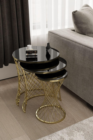 Mydeco Lusaka 5'Li Siyah İskelet Bronz Aynalı Orta Sehpa & Zigon Sehpa & Yan Sehpa & Bohem Sehpa Takımı