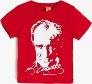 Unısex 23 Nisan 29 Ekim 10 Kasım 19 Mayıs Gösteri Kostüm Atatürk Baskılı Kırmızı Kısa Kol T-Shırt