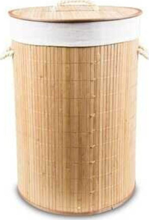 Katlanır Bambu Yuvarlak Çamaşır Sepeti