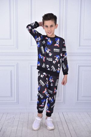 Kışlık Sonic Şardonlu Siyah Alt Üst Eşofman Takım Çocuk Giyim