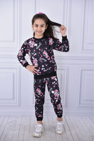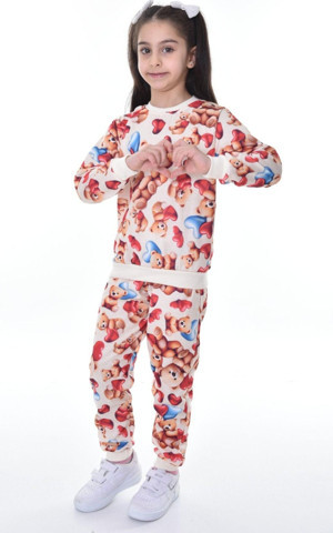 Mevsimlik Uzun Kol Baskılı Kız Çocuk Eşofman Takımı