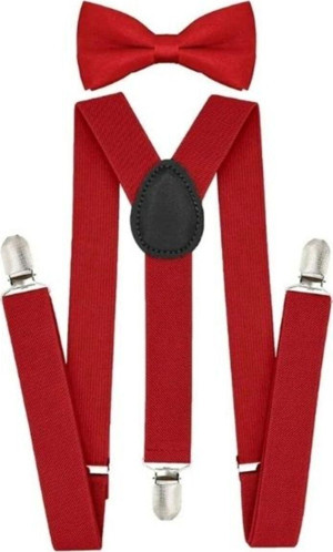 Kırmızı 1-9 Yaş Pantolon Askı Papyon Seti Kırmızı 6-9 Yaş