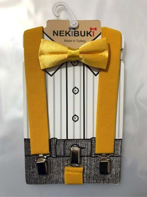 Unisex Çocuk Sarı Papyon Ve Pantalon Askısı Set Hardal Tek Ebat