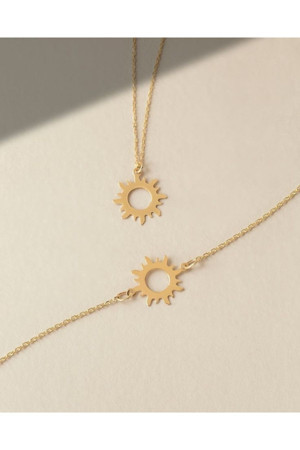 925 Ayar Gümüş Güneş Kolye Ve Bileklik Takı Seti