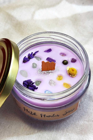 Pembe Lavanta Dekorlu Kokulu Mum 210 Cc
