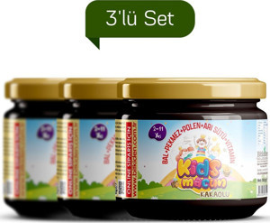 Kids Macun Çocuklara Özel Glikozsuz Bal Pekmez Polen Ve Arı Sütü 3 Lü Set Kakaolu 3x350 gr