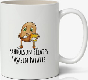 Kahrolsun Pilates Yaşasın Patates Yazılı Baskılı Kupa Bardak - Baskılı Kahve Kupa Bardak