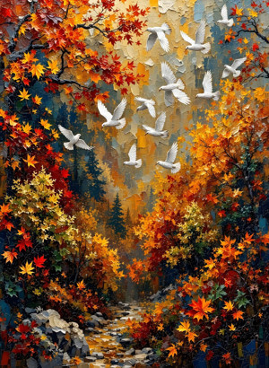 1000 Parça Beyaz Kuşların Dansı Puzzle - Uçuşan Beyaz Kuşlar