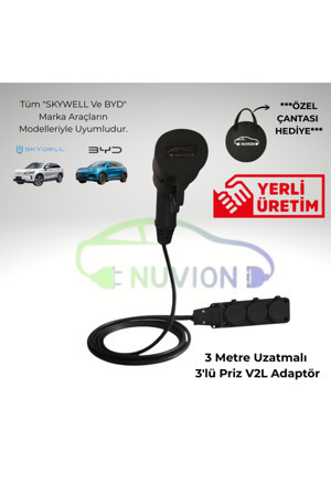 V2L - Byd/Skywell Uyumlu 3'Lü V2L Elektrikli Araç Şarj Kablosu - Enerjini Elektrikli Aracından Al