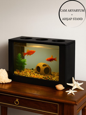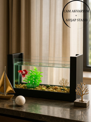 Beta Akvaryum Ahşap Hediyelik Balık Akvaryumu Doğal Ahşap Şık Ve Dayanıklı Modern Tasarım Hediyelik