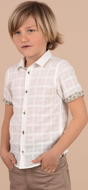 Kendinden Desenli Beyaz Erkek Çocuk Gömlek