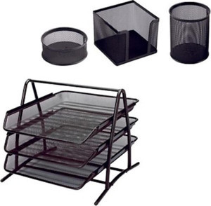 Metal Ofis Seti (File Metal 3'Lü Evrak Rafı + Kalemlik + Ataşlık + Küpnotluk)