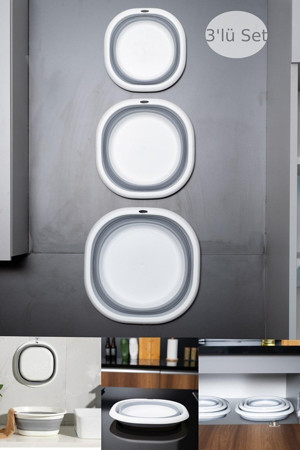 3'Lü Katlanır Badya Leğen Akordiyon Katlanır Badya Set 2,7 - 5 - 10 Lt