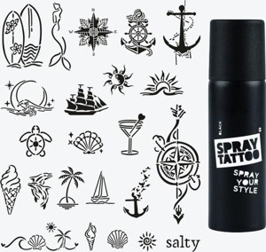 Sea Vibes City Pack Dövme Şablon Seti ve Siyah Sprey