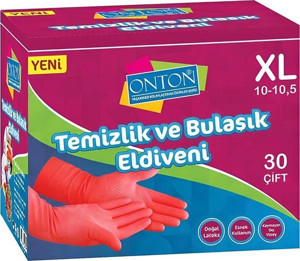 Bulaşık ve Temizlik Eldiveni 30 Çift XL (10-10,5) Kırmızı Lateks
