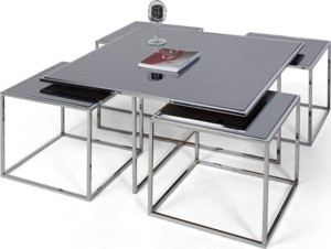 Kante Metal Crom Kaplama Füme Aynalı Orta Sehpa 4+1 92x92 cm