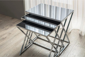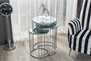 Napoli Crom Nikel Metal Ayak Üst Cam Ayna Zigon Sehpa
