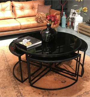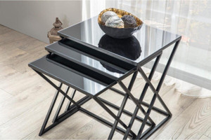 Venedik Metal Siyah Ayak Siyah Cam 3 Lü Içiçe Geçen Zigon Sehpa