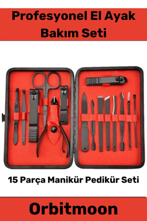 Profesyonel Paslanmaz Çelik El Yüz Ayak Bakımı Keskin Özel Seri Manikür Pedikür Seti 15 Parça