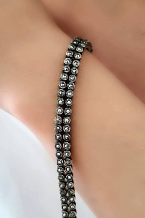 Çift Sıra Markazit Taşlı Su Yolu Gümüş Bileklik